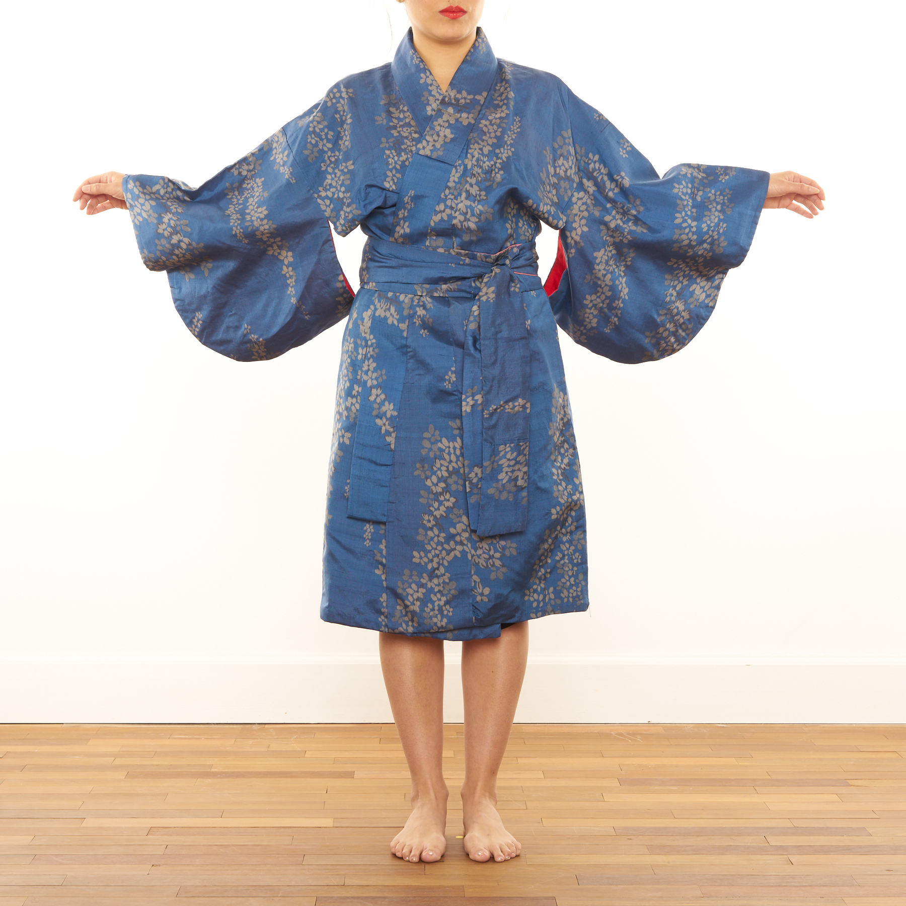 This Kimono was customised which means that it is tailored to be a unique dress for special occasions. Wear it indoors or outdoors, bring it to the party or just look chic at your work. It’s a great garment anytime you need to feel feminine and elegant. You can even marry in one. That is how universally beautiful they are.
